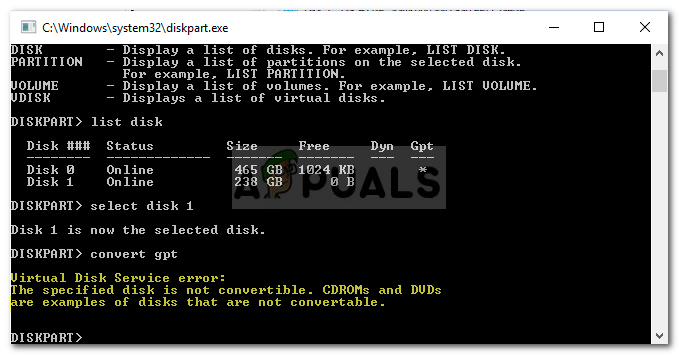 - Windows is running on the disk: Usually, when you face the error, it is because you are running Windows on that disk. In such a case, you won’t be able to convert the disk to GPT using DiskPart.