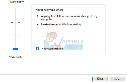 - You will notice that there are several different options you can choose on the slider. If your slider is set at the top level, you will definitely receive more of these pop-up messages than usual. Also, the error messages similar to the one you are experiencing right now are usually caused by User Account Control.
