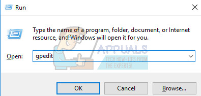 - Enter “gpedit.msc” in the Run dialog box, and press the OK button in order to open the Group Policy Editor.