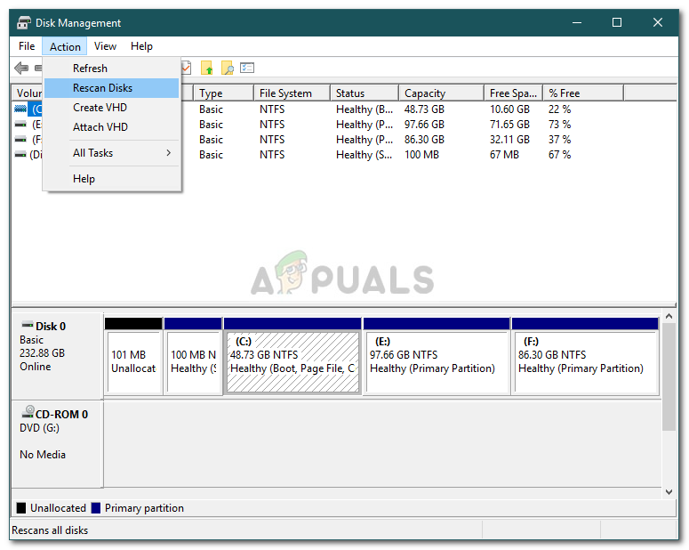 Using “Rescan Disks” helps the system detect recent disk changes, like new partitions or unallocated space. This refresh updates the system’s storage view, making new or changed space available without more troubleshooting.