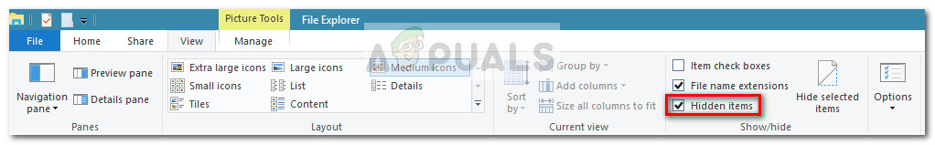 - Open File Explorer and go to the View tab using the ribbon at the top of the window. Then, make sure the checkbox associated with Hidden Files (Show Hidden System Files on older Windows versions) is enabled.