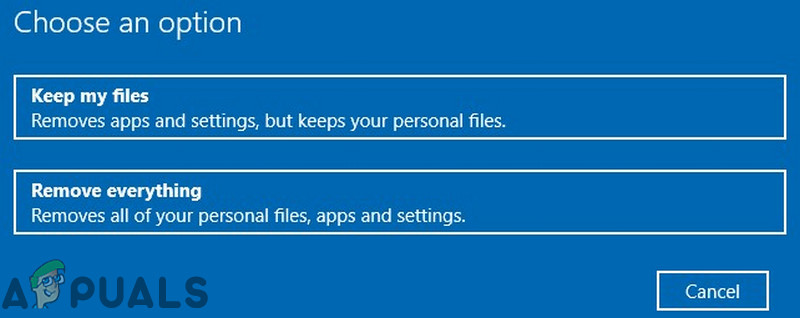 Select Keep My Files or Remove - After resetting the PC, check if your system is clear of the error.