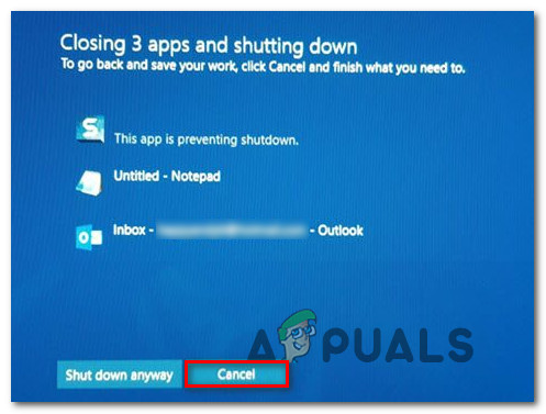 If you’re looking for a way to resolve or circumvent the “This app is preventing shutdown” error, this article will provide you with some troubleshooting steps. Down below, you’ll find several methods that other users in a similar situation have used to prevent the warning message from appearing (either by handling the app responsible or by disabling the warning prompt altogether.