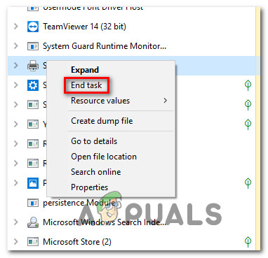 Some affected users have managed to resolve the issue by using the Task Manager to close the responsible process. Here’s a quick guide on how to do this: