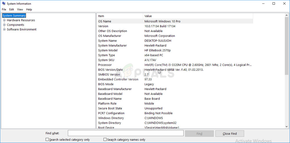 - Find out the current version of BIOS utility you have installed on your computer by typing “msinfo” in the Search bar or the Start menu.