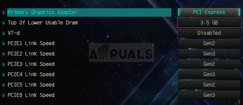 - Once you locate the correct option, change it from Automatic or Disabled to 3.5GB.