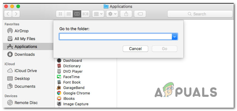 Go to the folder text box - Inside the Go to text field, paste the following location and hit Return: