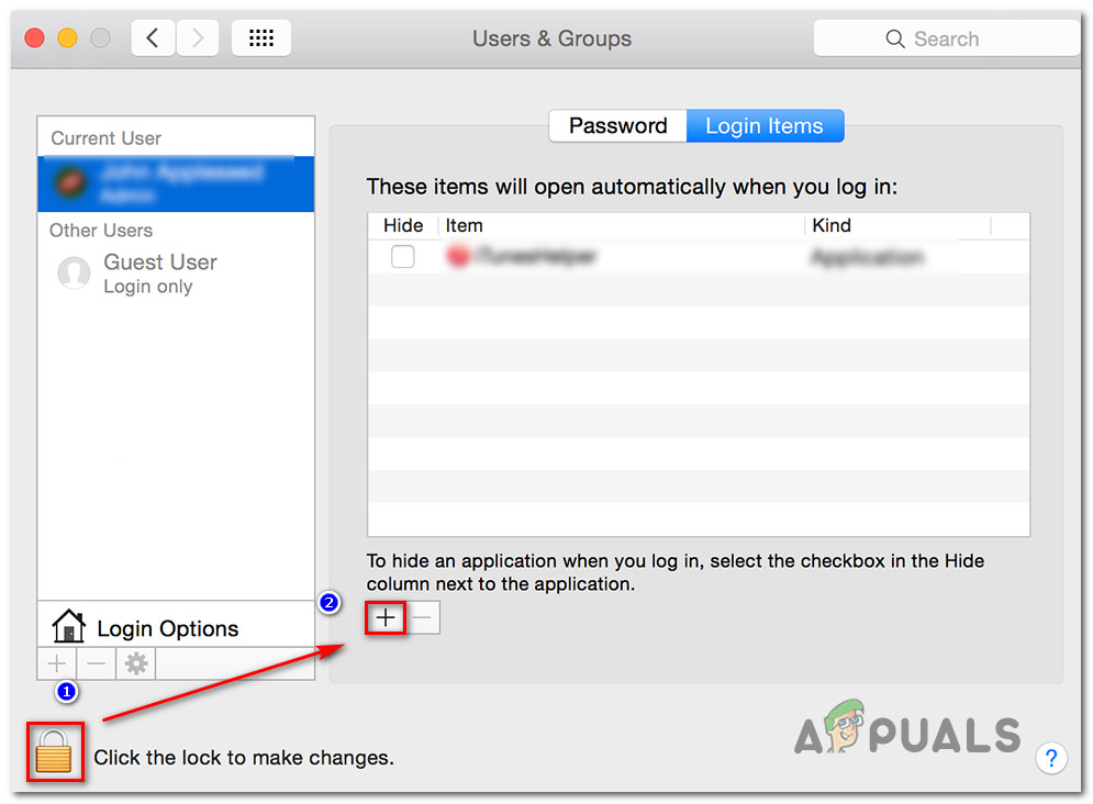 - In the newly appeared menu, click on the lock icon to unlock editing, then type in your administrator name and password.