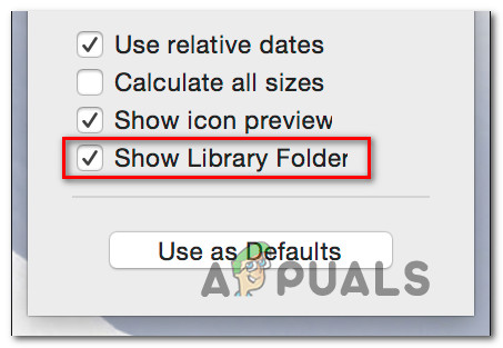 - Inside View Options, ensure that the box associated with Show Library Folder is checked.