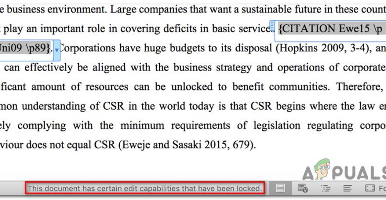 Some Microsoft Word and Excel users are reporting that the program is suddenly showing “This document has certain edit capabilities that have been locked” when they try to edit it. The issue mostly seems to occur when the user tries to edit citations. As most users have reported, the issue doesn’t seem to be caused by migration or password protection, but it seems to be exclusive to the Apple ecosystem – confirmed to occur on MacOS, OSx, and iOS (occurring on tablets).