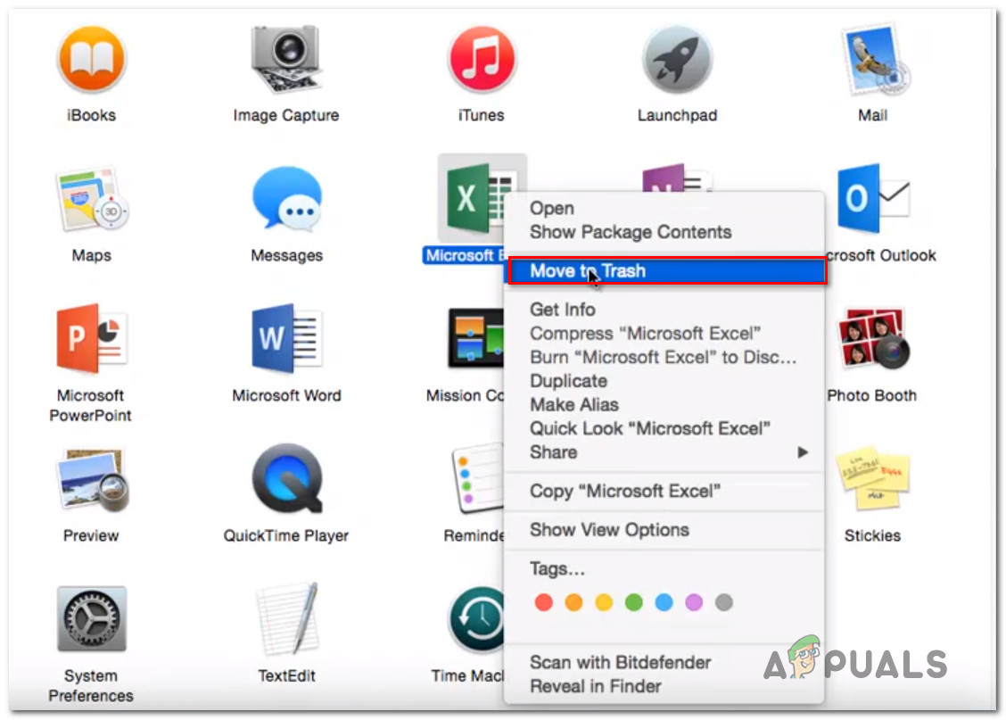 Moving every Office application to the trash Note: You can also move every application to the trash individually.
