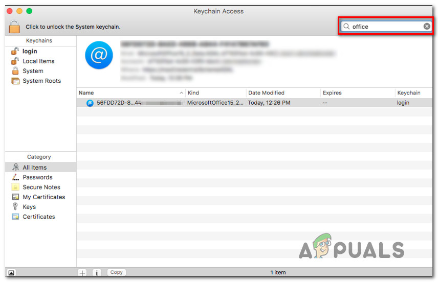 Showing passwords inside the KeyChain App - Check if the password you used to activate your Office product is correct. If the password is mangled, change it to the correct one and click on Save Changes.