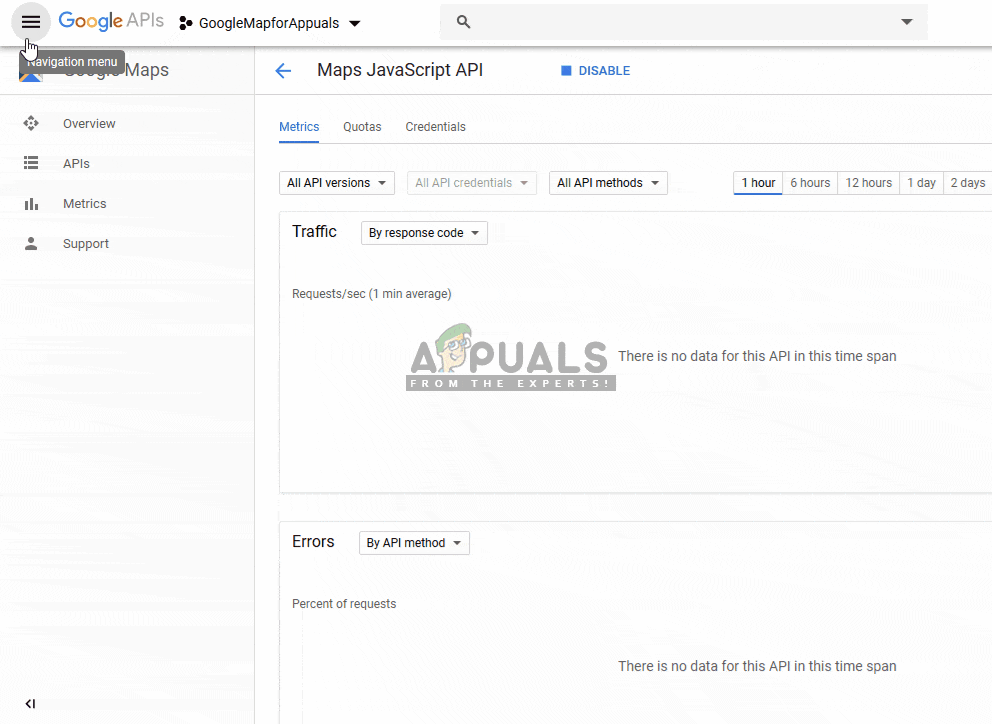 - Search for “Maps JavaScript API” and open it