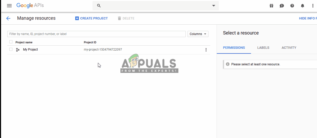 - Go to Google’s Cloud Resource Manager