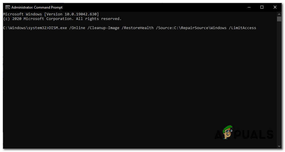 - In the command prompt, type DISM.exe /Online /Cleanup-Image /RestoreHealth and press Enter.