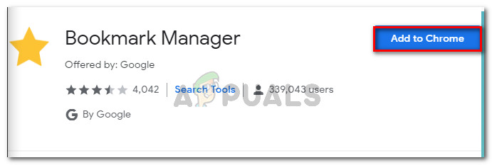 Several users struggling to resolve the same error message have reported that the problem was sorted out after the extension was reinstalled. As it turns out, the “This Webpage Was Blocked By an Extension (ERR_BLOCKED_BY_CLIENT)” error is reported to occur in conjunction with Bookmark Manager if you have over 100+ bookmarks that are being processed at once when you open the browser.