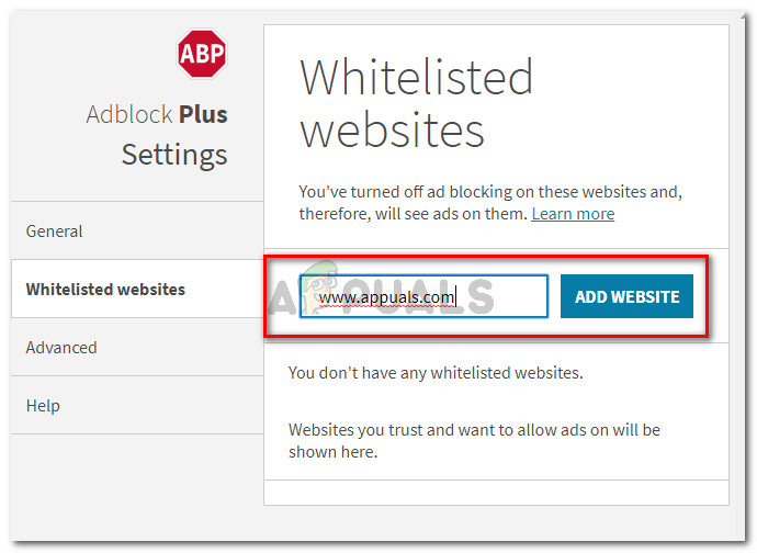 If you’ve previously confirmed that one of your ad-blocking extensions is causing the error, you can resolve the error message by adding the website that is being blocked to the Whitelist.