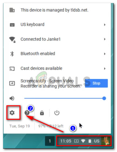 - Go to the bottom-right section of the screen and click once inside the time box. Then, select the setting icon (cog wheel) to access the Settings menu.