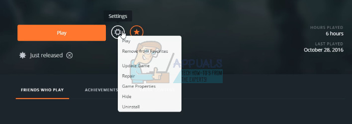- Click on the Titanfall 2 icon at the Game Library, right-click the gear icon next to the orange Play button and choose the Game Properties entry.