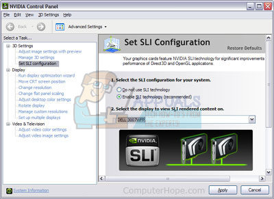 - Finally, select the Do not use SLI technology option and click on Apply to confirm the changes.