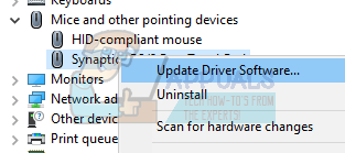 - Navigate to the device manager, right-click on the touchpad and select “Update Driver Software”.