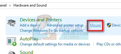 - Now click on “Mouse” under the sub-heading of Devices and Printers to open the options.