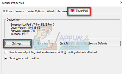 - Once in the mouse settings, click on “TouchPad” tab The name might be different for different manufacturers. In this case, the touchpad is made by Synaptics.