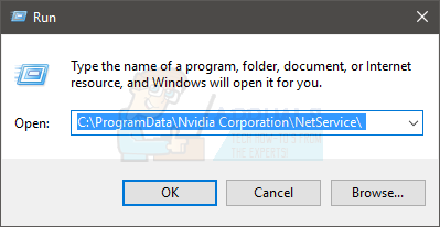 - Type C:\ProgramData\Nvidia Corporation\NetService\ and press Enter