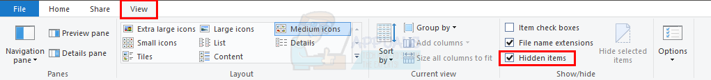 - Click View in the File Explorer and check the option Hidden Items