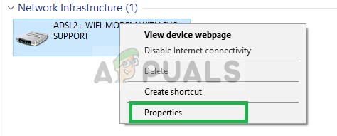 Clicking on Network - Right–click on your router located beneath Network Infrastructure