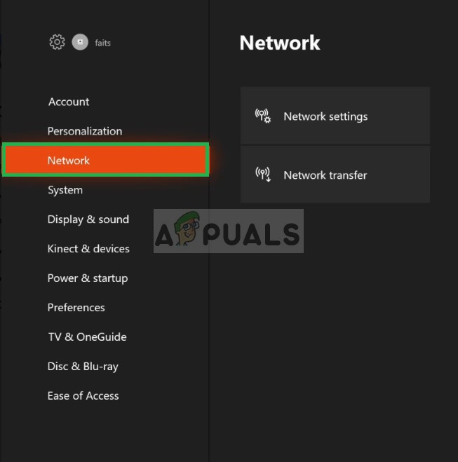 Selecting Network - Select Network Settings from the right