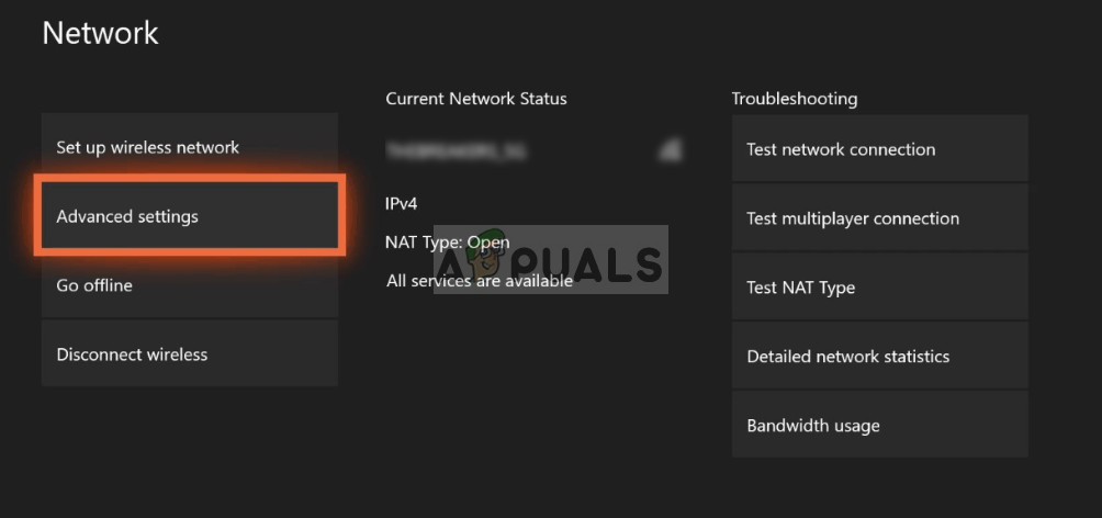 Selecting Network Settings - Select Advanced Settings