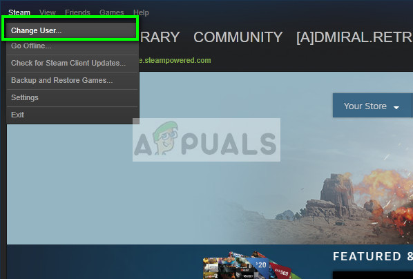 - Log out of Steam by clicking on the option of “Change User” present if you click your account title on the top right corner of the Steam client.