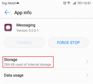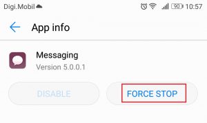 Before we delete any app data, let’s start by force closing the Messaging app and see if the app manages to instantiate itself without the error message. Here’s what you need to do: