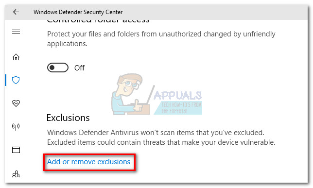 If you’re using Windows Defender, follow the guide below to add the application folder to the exclusion list:
