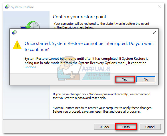 - Hit Finish and then click Yes at the next prompt to start the restore process. When the restore is complete, your PC will automatically restart. Upon the reboot, your OS will be restored to the previously selected version.