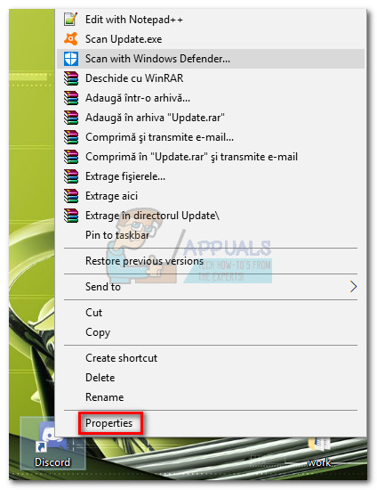- Right-click on the shortcut (or executable) of the application that’s displaying the 0xe06d7363 error and click on Properties.