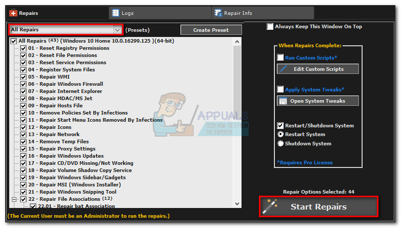 Method 4: Using Windows Repair (All in One)