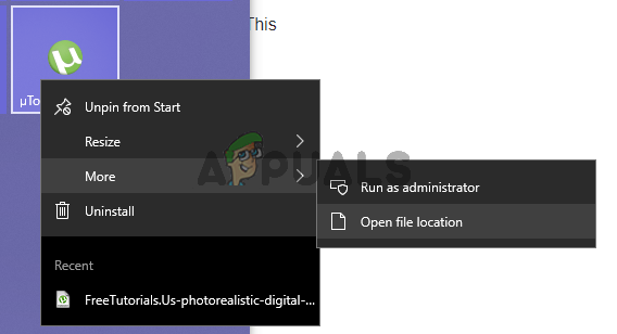 Open the file location of uTorrent - Once it appears in the search, right-click on it and open its file location by clicking on Open file location. This will take you to the uTorrent’s shortcut folder.