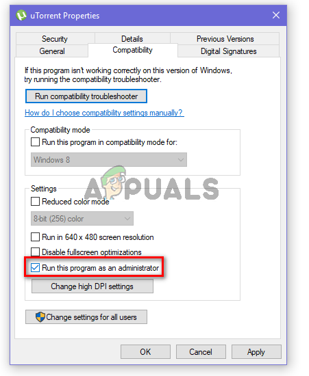 Method 1: Granting administrative privileges to uTorrent