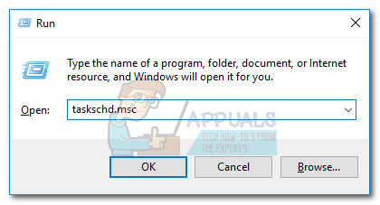 - Next, open a Run window (Windows key + R), type “taskschd.msc” and hit Enter to open Task Scheduler. Since the tasks that have been causing issues are deleted, Task Scheduler should open just fine now.