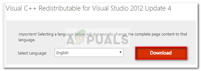 - Next, let’s install Microsoft Visual C++ 2012 Redistributable for Visual Studio 2012 Update 4 from this link (here). Hit the Download button, open the installer and follow the prompts to install it on your system. This will ensure that your system has all the optional DirectX files that 3rd party applications might ask for.