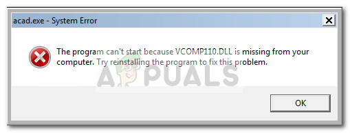 The error “vcomp110.dll is missing” is typically encountered when the user tries to open a graphical application such as Photoshop, AutoCAD, Corel Draw, WLXPhotoGallery and so on. However, some users are reporting getting it after a Windows game fails to open.