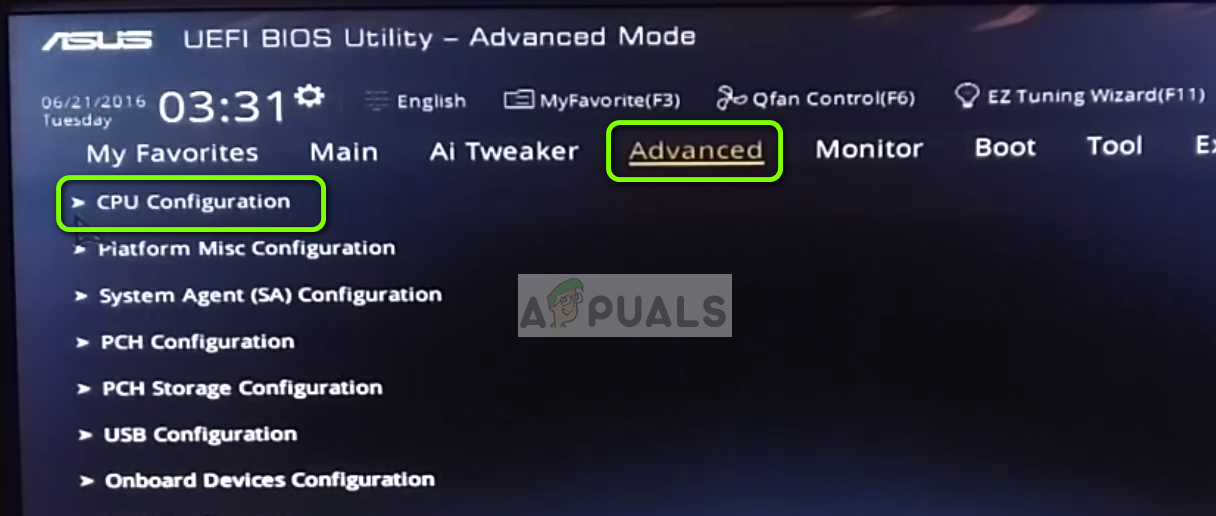 - Once the BIOS is enabled, navigate to the option of Intel Virtualization Technology which is usually present in Advanced. The menu in which it is present might differ motherboard to motherboard so explore yourself.