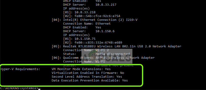 - Once the results are loaded, navigate to the bottom to search for the entry “Hyper-V Requirements”. If you have Yes in front of the options, it means that your computer supports Hyper-V. If you don’t and see a No, you should skip this solution.