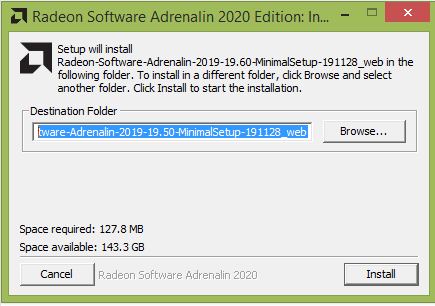 Downloading AMD Adrenalin Note: You can change the default destination folder again, but this is not recommended.