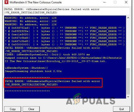 Some Windows users are encountering the VKEnumeratePhysicalDevices Failed with Error (VK_Error_Initialization_Failed) fatal error when attempting to launch certain games that are actively using the Vulkan computing API technology. In most documented cases, this error is reported to occur with Wolfenstein titles and Doom titles – typically games released by Bethesda.