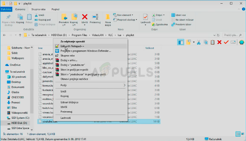 - Locate the lua folder, open it, and open the playlist folder inside. Locate the youtube.lua file, right-click on it and choose to open the file with Notepad or any other text editor you might have installed such as Notepad++.