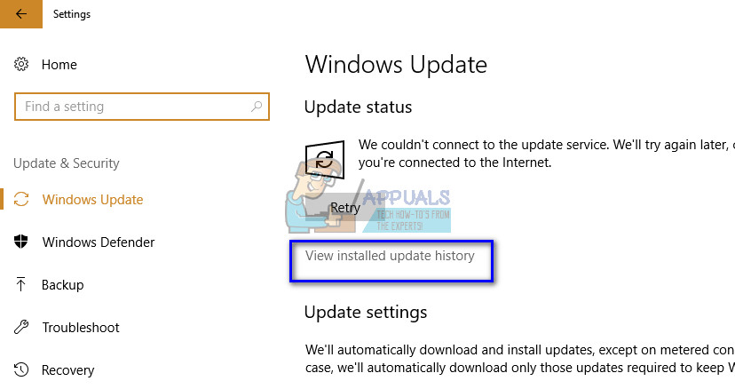 - Once in Settings, click on “Update and security”. Here, under the heading of Update status, click “View installed update history”.