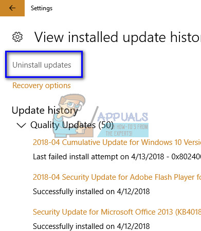 - Click “Uninstall updates” present at the very top of the screen.